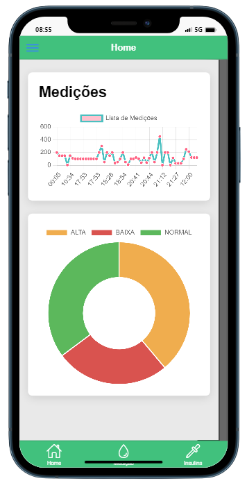 Registre suas medições de Glicemia, e obtenha uma interface visual fácil de usar.